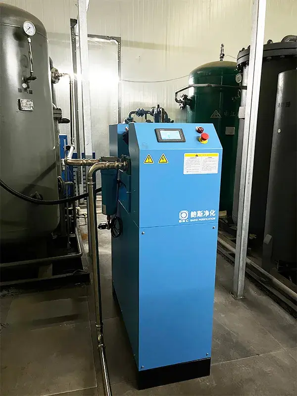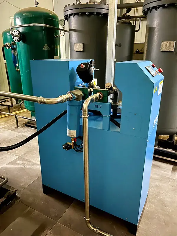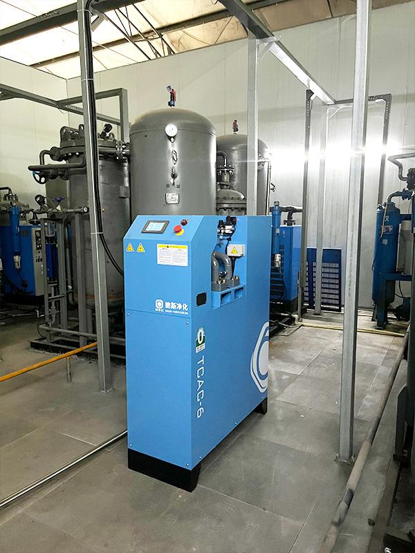 客户需对现有微油螺杆空压机的后处理系统进行全面升级改造,以确保压缩空气质量达到ISO 8573.1 Class 0无油标准。结合实际用气量情况及油含量指标要求,选型转化式除油机(型号:TCAC-6-8),安装于后处理系统的冷干机后端。